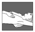 In pozitia culcat, cu bratul stang sub cap si cu o perna sau un prosop sub umarul stang, se examineaza sanul stang cu mana dreapta, folosindu-se aceeasi miscare circulara descrisa mai sus. Se inverseaza procedura, folosind mana stanga pentru sanul drept. |