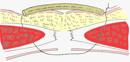 sutura in mai multe straturi, cu fire dese care necrozeaza tesutul;