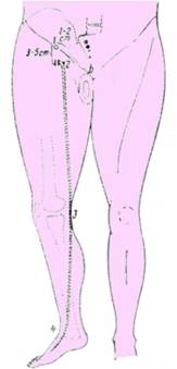 Inaintea operatiei, la pacientul aflat in ortostatism, se deseneaza cu un creion dermatograf special pachetele varicoase, locul comunicantelor si colateralele varicoase ale trunchiului principal.