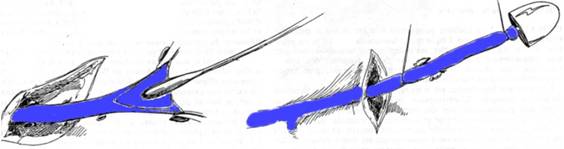 Fig. 7. Introducerea retrograda a stripper-ului si stripping-ul retrograd prin plisare (dupa Pop D. Popa)