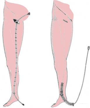 Fig. 6 - Introducerea anterograda a stripper-ului si fixarea sa la nivelul venei (4)