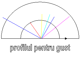 Semicercul din interior semnifica limita de perceptie(valoarea limita), iar cel exterior arata impresia globala gustativa (amplitudinea).