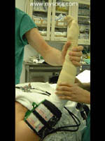 Locul punctiei prima data se face un buton de anestezie locala, apoi se injecteaza, dupa reperarea fibrelor nervoase, substanta anestezica analgezica locala in teca neurovasculara (structura conjunctiva ce inveleste nervii, artera si vena aferenta).