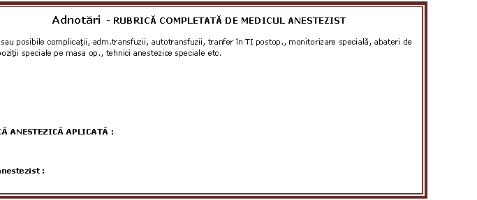 consimt ca medicului anestezist mentionat, si echipa sa, sa modifice tehnica anestezica in conformitate cu situatiile noi aparute pe parcursul aplicarii tehncii anestezice
