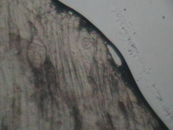 Daca proba de examinat este uscata si veche, inainte de a fi presata trebuie tinuta timp de 10 - 20 minute in solutie de hidroxid de potasiu, diluata cu doua parti de apa.