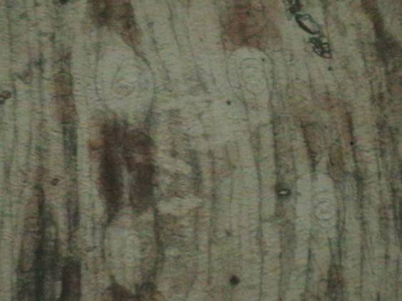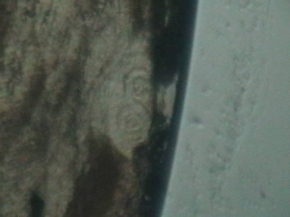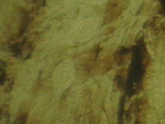 In timpul examinarii se pot identifica larve de Trichinella spiralis in diferite stadii de evolutie precum si alti paraziti sau formatiuni asemanatoare trichinelelor. Astfel apar: