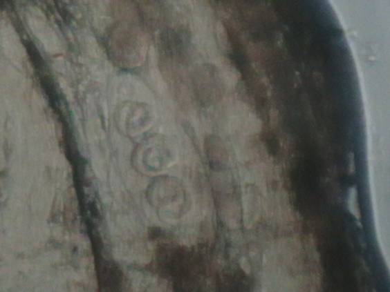 larve in stadiul de intindere si curbare, acestea apar vizibile in campul optic dupa 15-18 zile de la infestarea animalului,