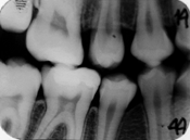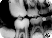 - leziune initiala de smalt situata pe fata distala a dintelui 4.5, vizibila ca arie triunghiulara intunecata in externa a smaltului pe radiografia bitewing.