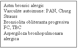 3. Chist pulmonar rupt sdr. Loeffler: hemoptizie, dispnee