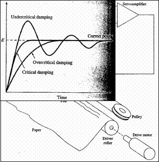 Alta problema care determina distorsionarea semnalului inregistrat este raspunsul sistemului la un semnal treapta de intrare (Figura4). Regimul corect este cel amortizat critic, cand sistemul mecanic ajunge repede in pozitia prescrisa. Cazurile amortizarii subcritice si supracritice produc intarzieri ale pozitionarii. Exista inregistratoare cu GMPBM care folosesc un traductor al pozitiei penitei. Semnalul de pozitie este filtrat trece-jos pentru a varia amortizarea ansamblului de scriere. Semnalul integrat rezultat este trimis servoamplificatorului pentru a fi sumat cu semnalul de eroare.