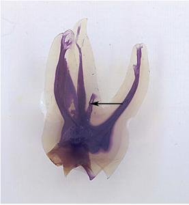 Figura 4. Canal in furcatie, dinte transparentizat dupa FRANK J. VERTUCCI