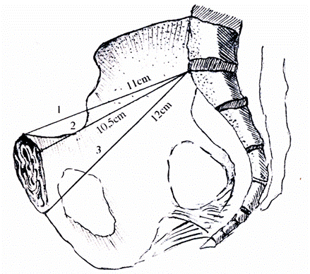 Promonto-suprapubian = "conjugata anatomica" = 11,5 cm