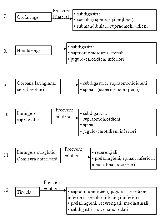 "Lateral neck dissection", una din formele de evidare ganglionara selectiva, este indicata in cancerul de orofaringe, hipofaringe si laringe cu N0 si, in anumite cazuri, cu N1. Daca 2-4 ganglioni cervicali sunt pozitivi histologic sau daca exista o evidenta extensie extracapsulara a procesului neoplazic, este recomandata iradierea postoperatorie.
