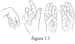 -in paralizia nervului median figura 1.3) - prin atrofia musculaturii tenare, policele este pozitionat in abductie si pus in acelasi plan cu celelalte degete, determinand atitudinea de 'mana simiana';