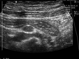 Fig. 12 Apendicita acuta ( diametru transvers >6mm