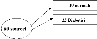 Pentru realizarea studiului au fost utilizati 60 soareci normali, 2 luni de viata, cu greutatea cuprinsa intre 30 si 43 grame care fusesera crescuti in conditii standard. La inceputul experimentului (timpul t0) soarecilor li s-a colectat sange (pentru a li se determina glicemia initiala, la t0) si au fost impartiti in doua grupe: 1) 10 soareci control, normali care au primit in continuare hrana normala si 2) 50 soareci diabetici, carora li s-a administrat intraperitoneal o injectie cu streptozotocina (150mg/Kg corp), preparata proaspat in tampon citrat 50mM, pH 4,5 si in continuare au primit hrana normala careia i-a fost scoasa vitamina PP (pelagro preventiva) pentru a accelera instalarea diabetului.