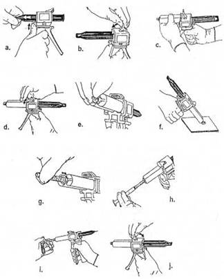 3. Dozarea componentelor in cartuse unite si omogenizarea lor in pistoale pentru amprentare (fig. 15.10.). Pistoalele de amprentare sunt dispozitive mecanice care se livreaza de catre firme specializate.