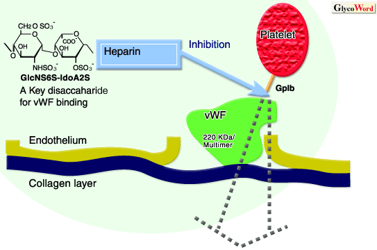 FvW realizeaza punti intre membrana trombocitara si fibrele de colagen. Aceste legaturi sunt mediate prin structuri receptoare (receptori ai colagenului si receptorul trombocitar, respectiv, GPIb-IX).