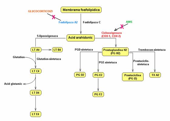 * Fosfolipaza A2 activata desprinde din fosfolipidele membranei trombocitare acidul arahidonic din care, pe calea ciclooxigenazei, rezulta endoperoxizi ciclici intermediari (PGG2 si PGH2), iar pe calea tromboxan-sintetazei se formeaza TxA2. TxA2 exercita urmatoarele efecte: