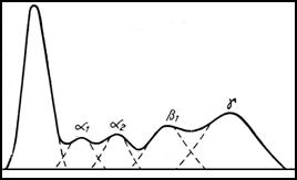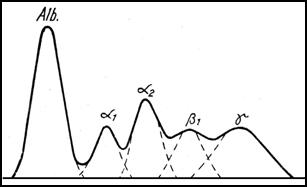 Curba caracteristica a picurilor serului normal, dupa banda electroforezei pe hartie.