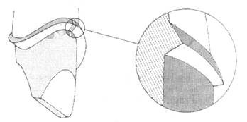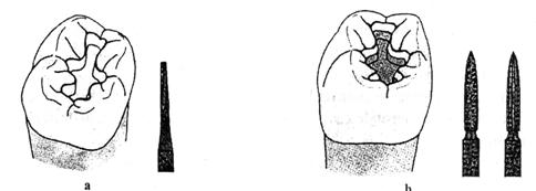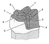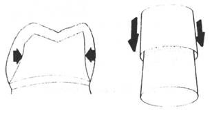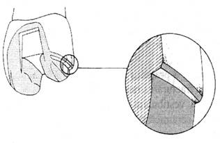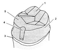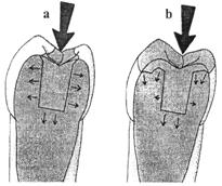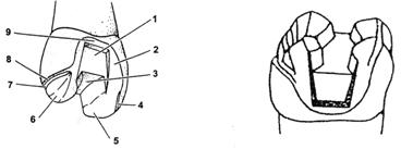 n - doua suprafete interne, cum ar fi peretii vestibulari si orali ai unei cavitati ocluzale preparate pentru inlay (retentie prin incastrare);