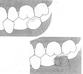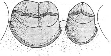 n - doua suprafete externe, cum ar fi peretii vestibulari si orali ai bontului preparat pentru o coroana de invelis (retentie de manson);