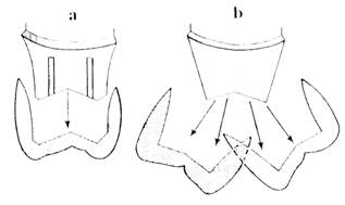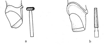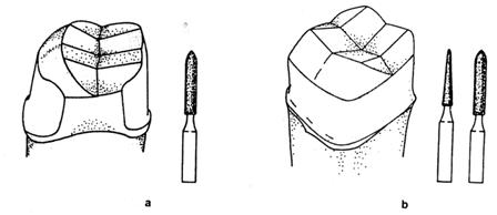 b - slefuirea suprafetei vestibulare; jumatatea ocluzala;