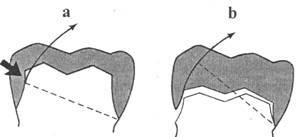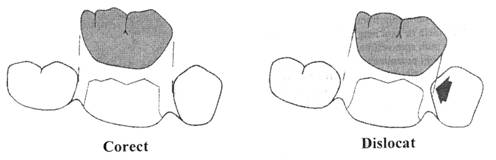 n Dislocarea unei restaurari cimentate se realizeaza prin efectul de parghie, care genereaza tensiune si forfecare in pelicula de cement. Efectul de parghie este unul din cele mai frecvente cauze ale descimentarii restauratiilor. Sunt posibile doua situatii: