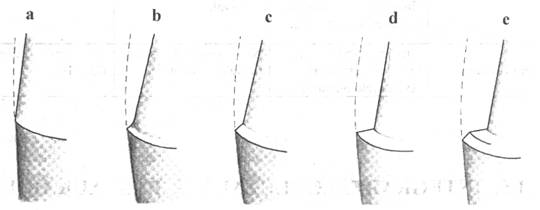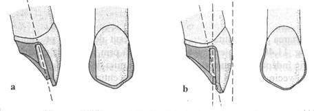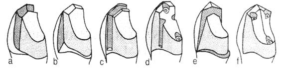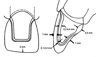 Schema prepararii unui dinte pentru o coroana mixta metalo-ceramica (incisiv central maxilar).