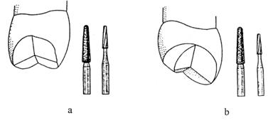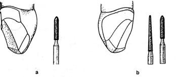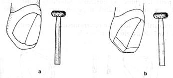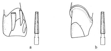 b - slefuirea suprafetei vestibulare: jumatatea gingivala.