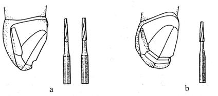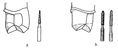a - prepararea canalului radicular cu freze de forat Peeso;