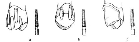 b.Bont cu peretii axiali aproape paraleli, la care stratul de ciment va fi supus la forfecare.
