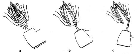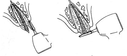 c - prepararea contrabizoului cu rol de incercuire (de protejare a peretilor coronari ai canalului