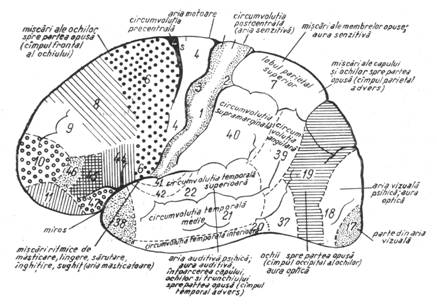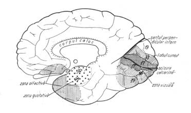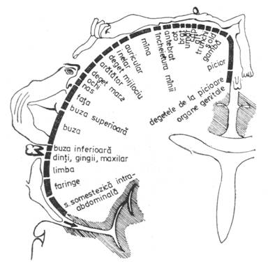 Figura 13 - b) Zonele senzoriale de pe fata interrna a emisferei cerebrale drepte