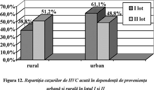 Din punct de vedere epidemiologic pacientii examinati au fost repartizati astfel: in lotul 1 din regiunea urbana faceau parte 44(61,1%) sic cea rurala 28(38,9%),iar in lotul 2 din regiunea urbana 20(48,8%) bolnavi si cea rurala 21(51,2%). VEZI FIGURA 3