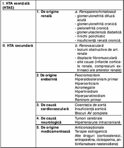 Clasificarea etiologica a HTA este redata in tabelul 17