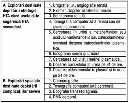 Tabelul 18. Alte invesigatii in cazul HTA secudare sau severe