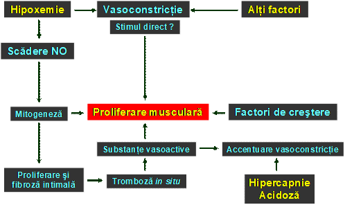 Alterari morfologice ale arterelor pulmonare (prin hipertrofie a FMN vasculare, muscularizare a unor vase non-musculare, inflamatie cronica, proliferare a intimei, fibroza excentrica intra- si peri-arteriala)