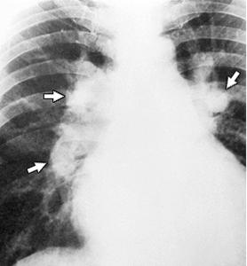 mediastinita fibrozanta (post-radioterapica, prin histoplasmoza)