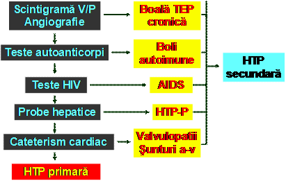 HTPP presiune sistolica in artera pulmonara (prin velocitatea de flux regurgitant tricuspidian la eco-Doppler de 3,0-3,5 m/s) > 40 mm Hg in repaus, fara cauza evidenta (OMS, 1998)