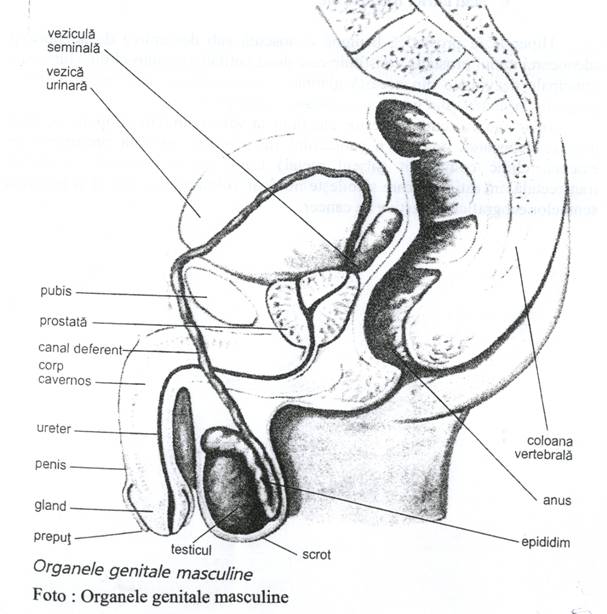 Aparatul genital masculin e reprezentat de:testicul,cordonul spermatic,penis,vezicule seminale si prostata .