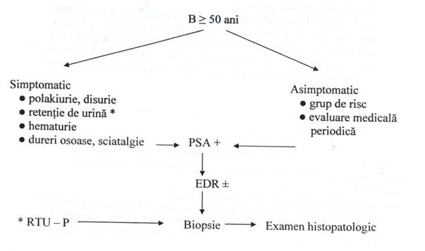 Acesta este sugerat de EDR si / sau PSA ,posibil de TRUS iar confirmarae se face prin exemenul histopatologic.