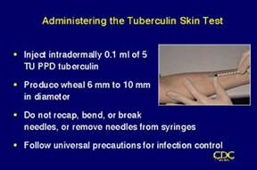 Locuri de electie: fata anterioara a antebratului (pentru tuberculina si se prefera, datorita cantitatii mici de administrat, folosirea seringii speciale a carei scala este impartita in 100 diviziuni la o capacitate de 1ml. Se alege acul Nr.20.