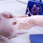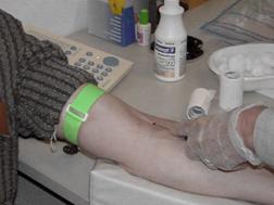 se aseaza in decubit dorsal cu bratul in extensie, sprijinit pe o mica perna, protejata cu musama si aleza.