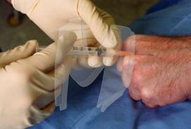 se injecteaza solutia lent, verificand din cand in cand pozitia acului in vena prin aspiratie