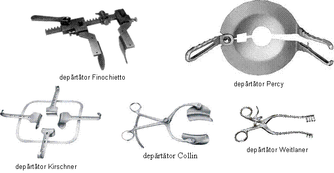 Altele: departator Dartigues, departator Hrynkschak (in chirurgia urologica), etc..