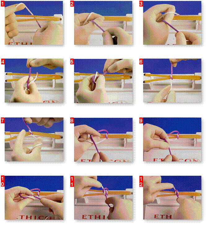 Maniera de efectuare a nodului chirurgical dublu (nod de frecare, nod chirurgical "adevarat"):