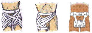 - infasare recurenta: indicata pentru acoperirea bonturilor de amputatie, la membre, la nivelul calotei craniene (se executa cu 2-3 fese).