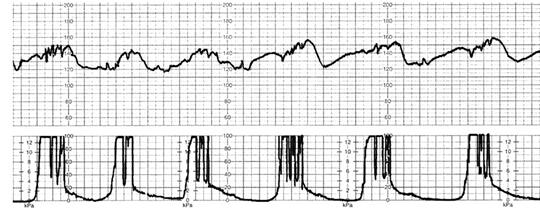 Unul sau mai multe episoade de miscare toracica si a peretelui abdominal de minim 30 sec. |