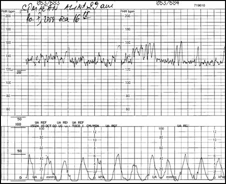 Cardiotocografia - CTG consta in inregistrarea simultana a ritmului cardiac fetal (RCF) si a activitatii uterine (UA).